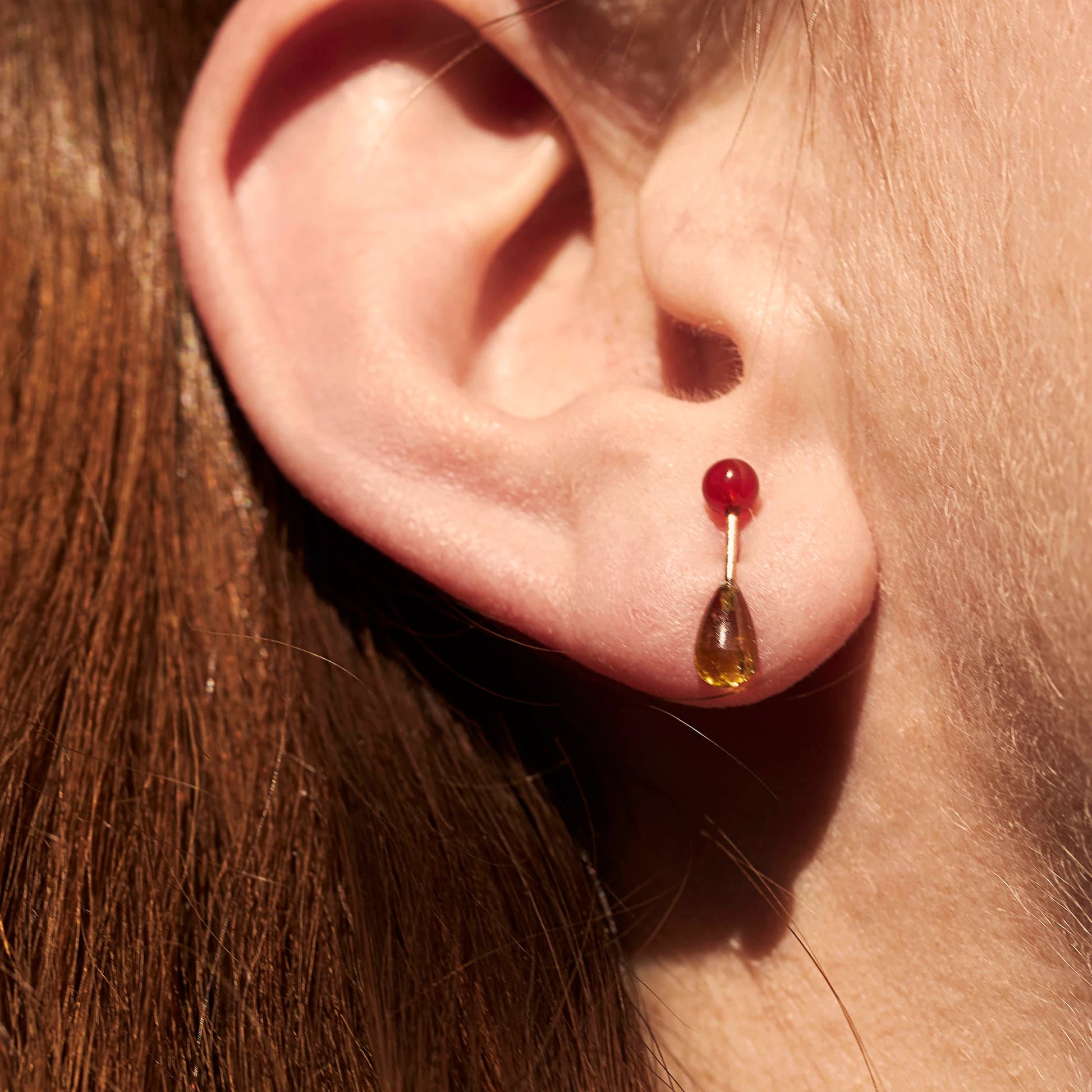 The carnelian & tourmaline barbell earring is available in recycled sterling silver and recycled 9kt gold.