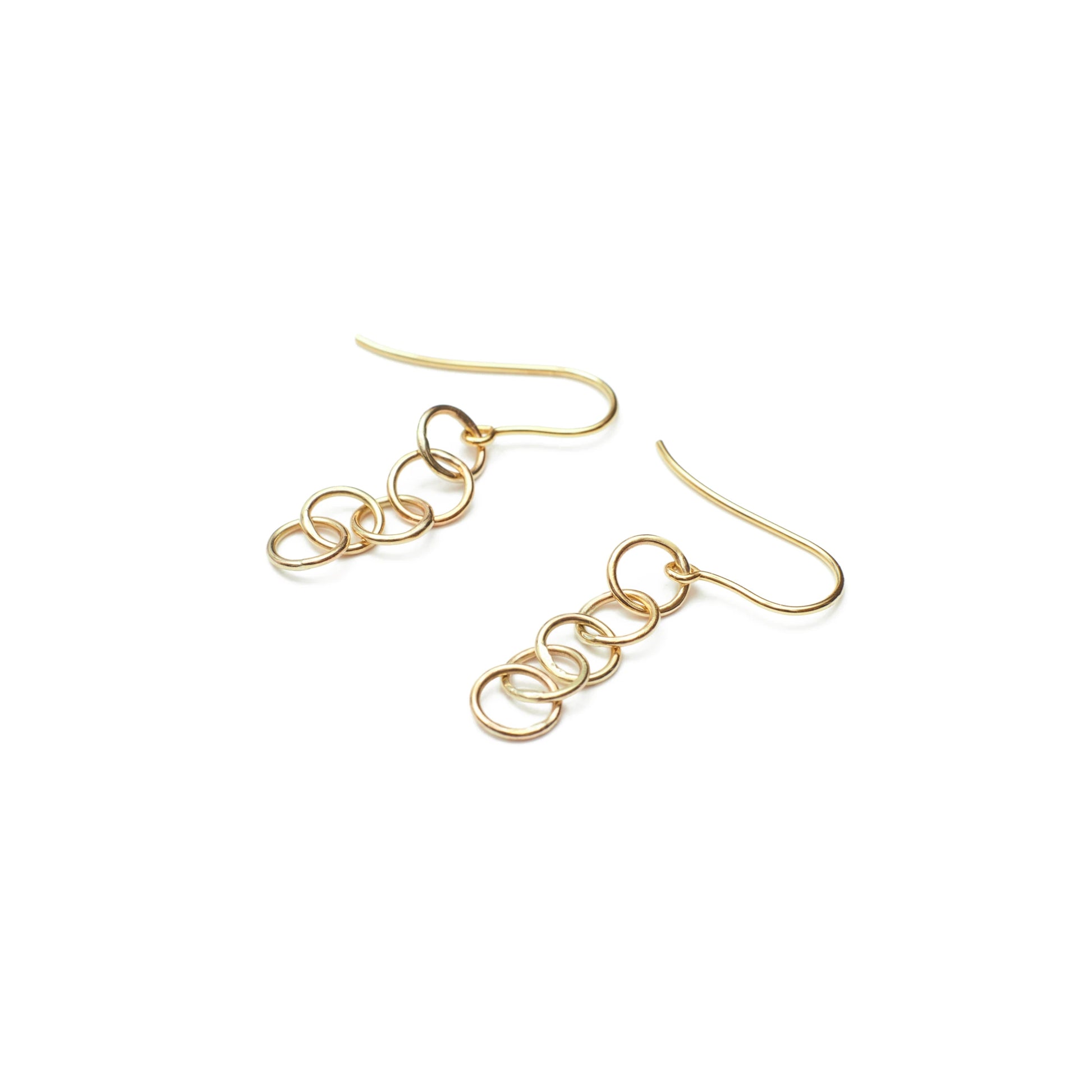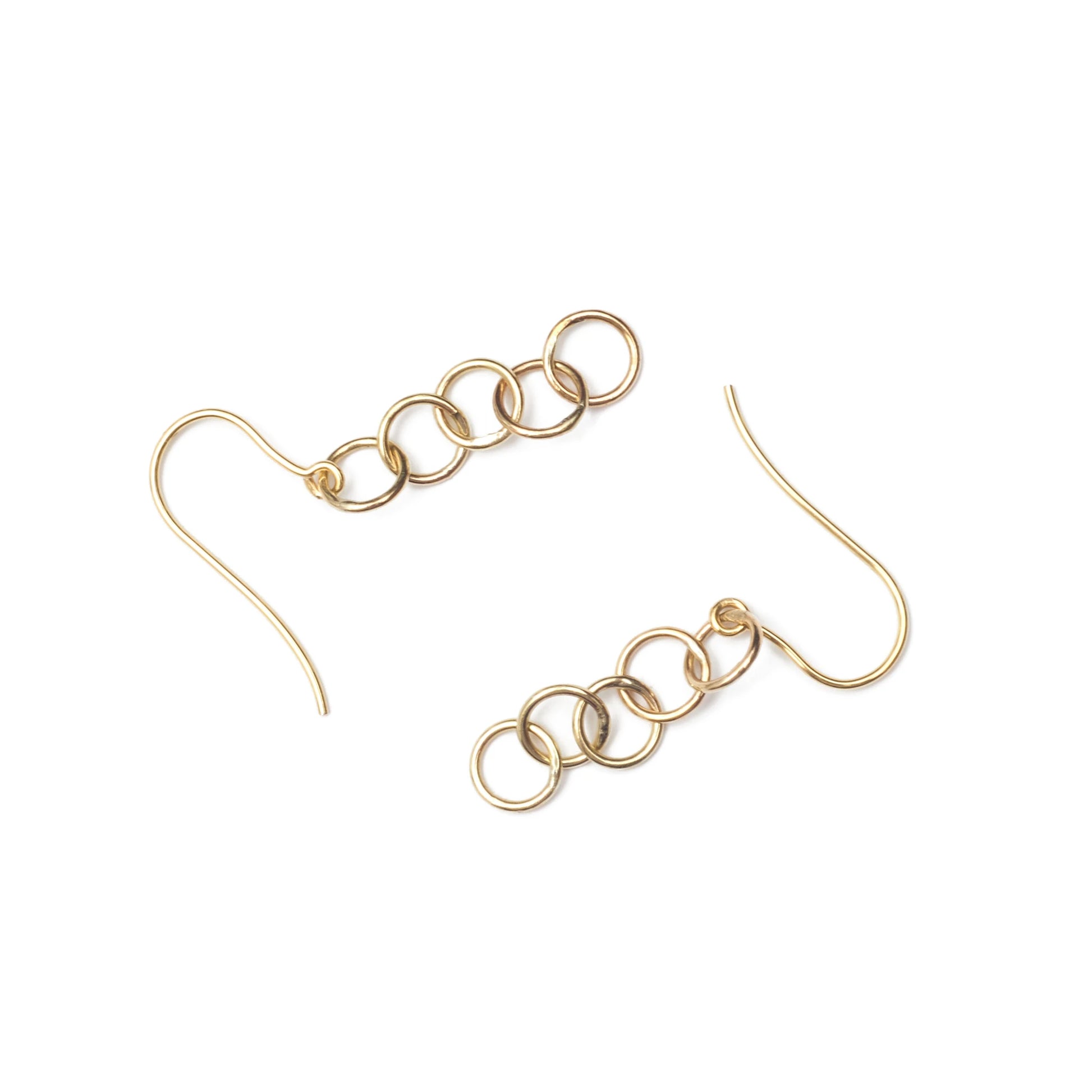 Made from four interlinking 9kt gold rings, the cascade earrings swing freely with every step. To keep them in focus pair them with stud earrings and hair tied back in a low bun.