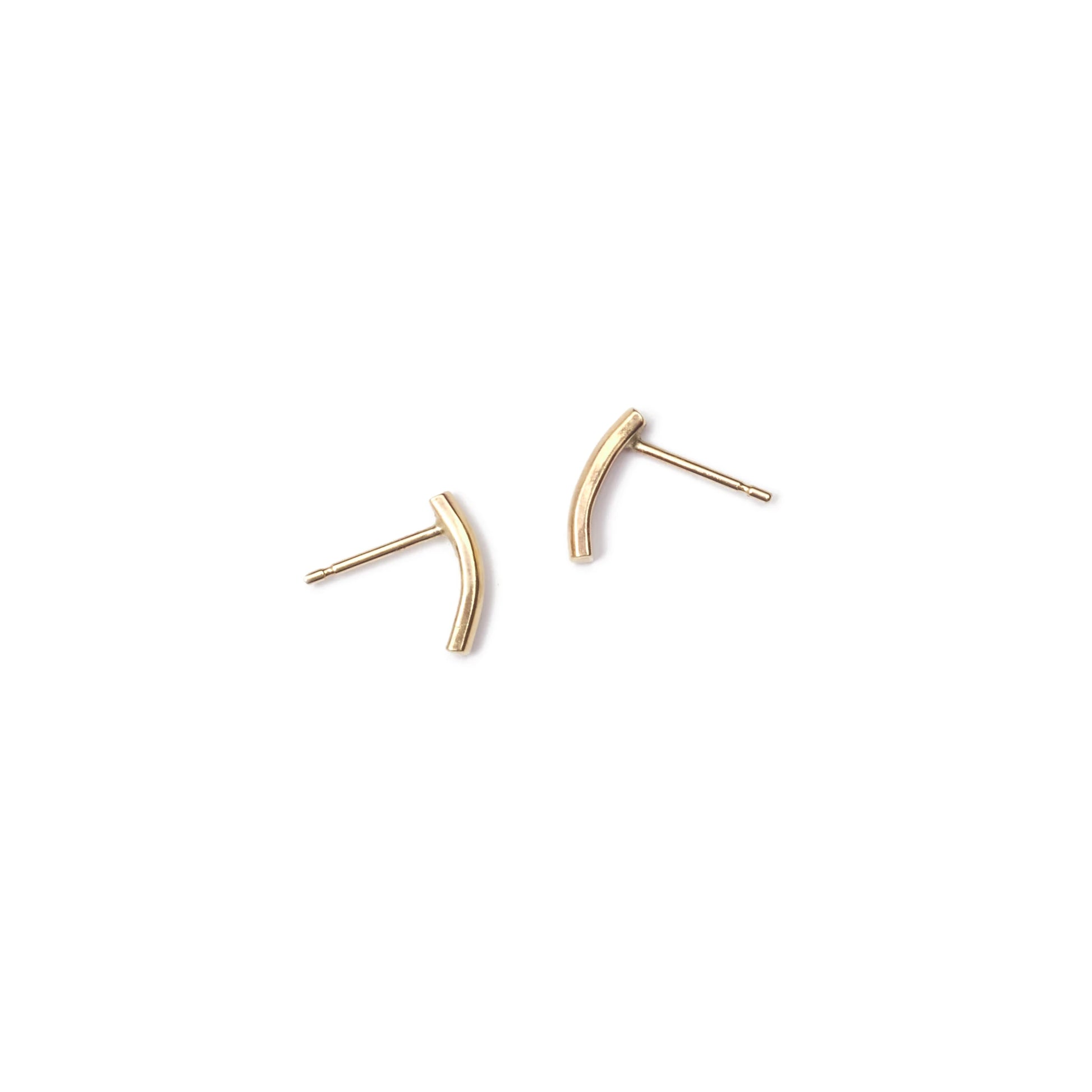 The curve earrings are hand formed to fit the curvature of the ear lobe, allowing the earrings to sit close to the ear. Minimal stud earrings that are perfect for wearing on their own or being worn alongside other earrings.
