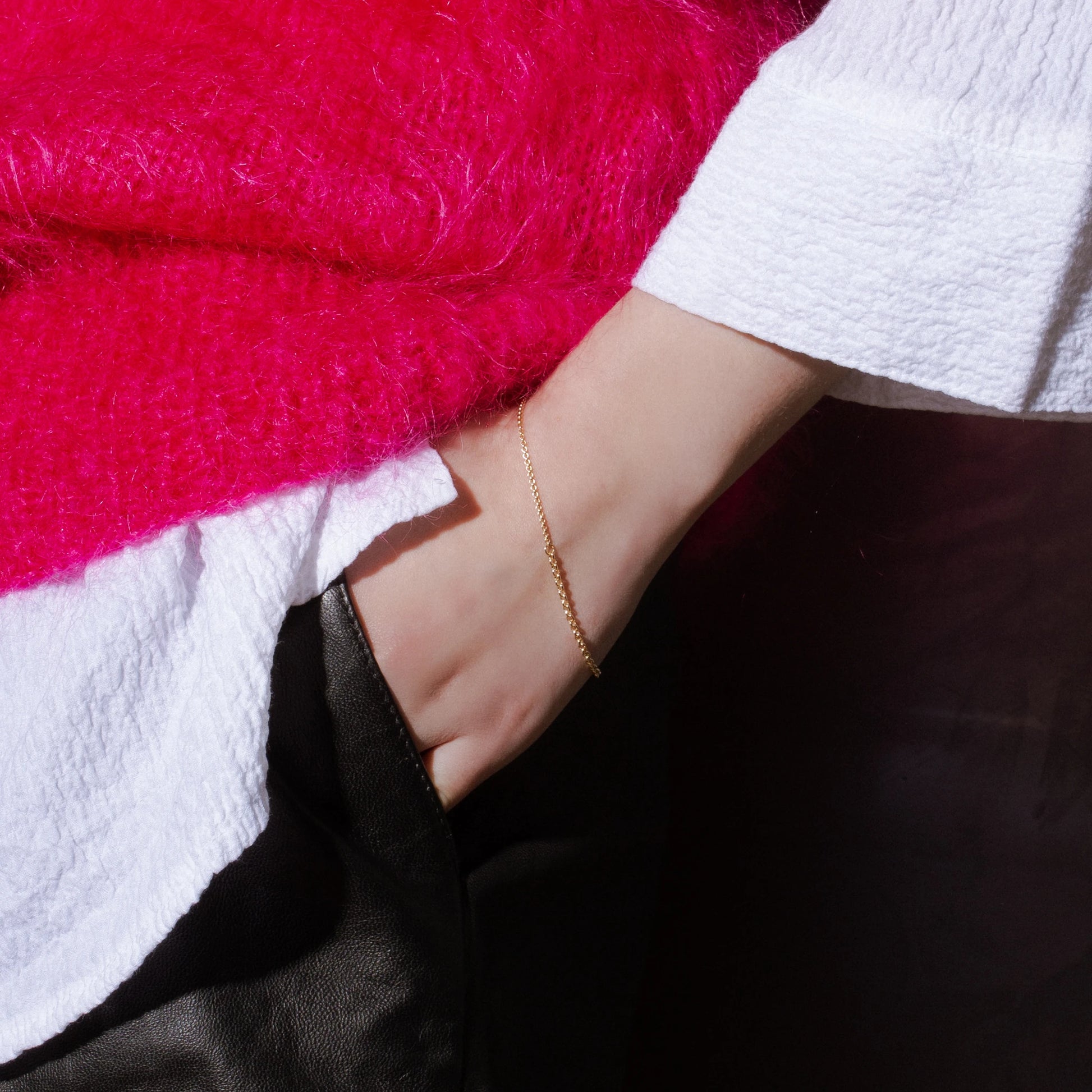 We recommend pairing the Graduated Bracelet in 9kt gold with the Column Ring, as worn by Molly.