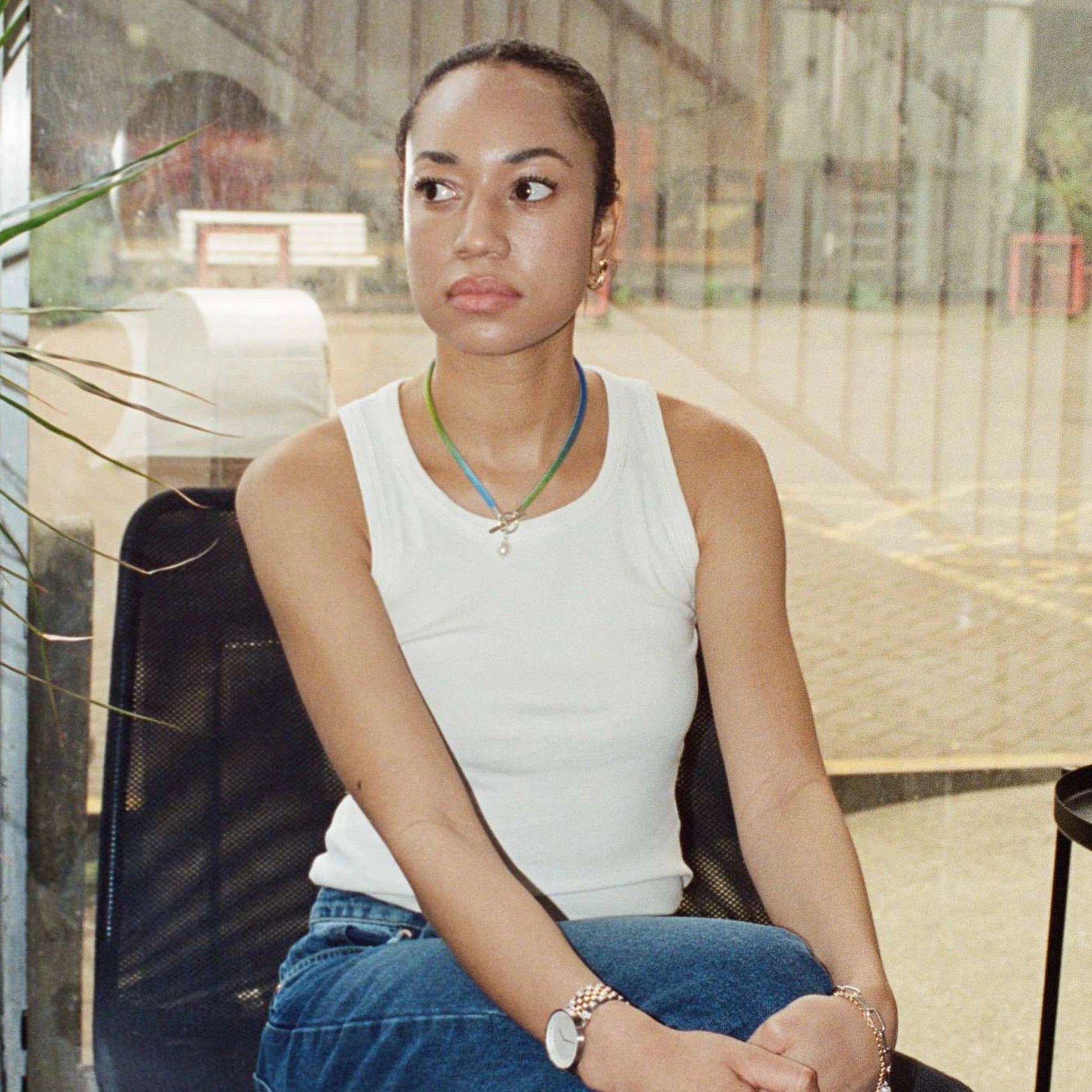 We recommend layering the Hazy Pearl Collar Necklace with the Duo Venetian Necklace in sterling silver.