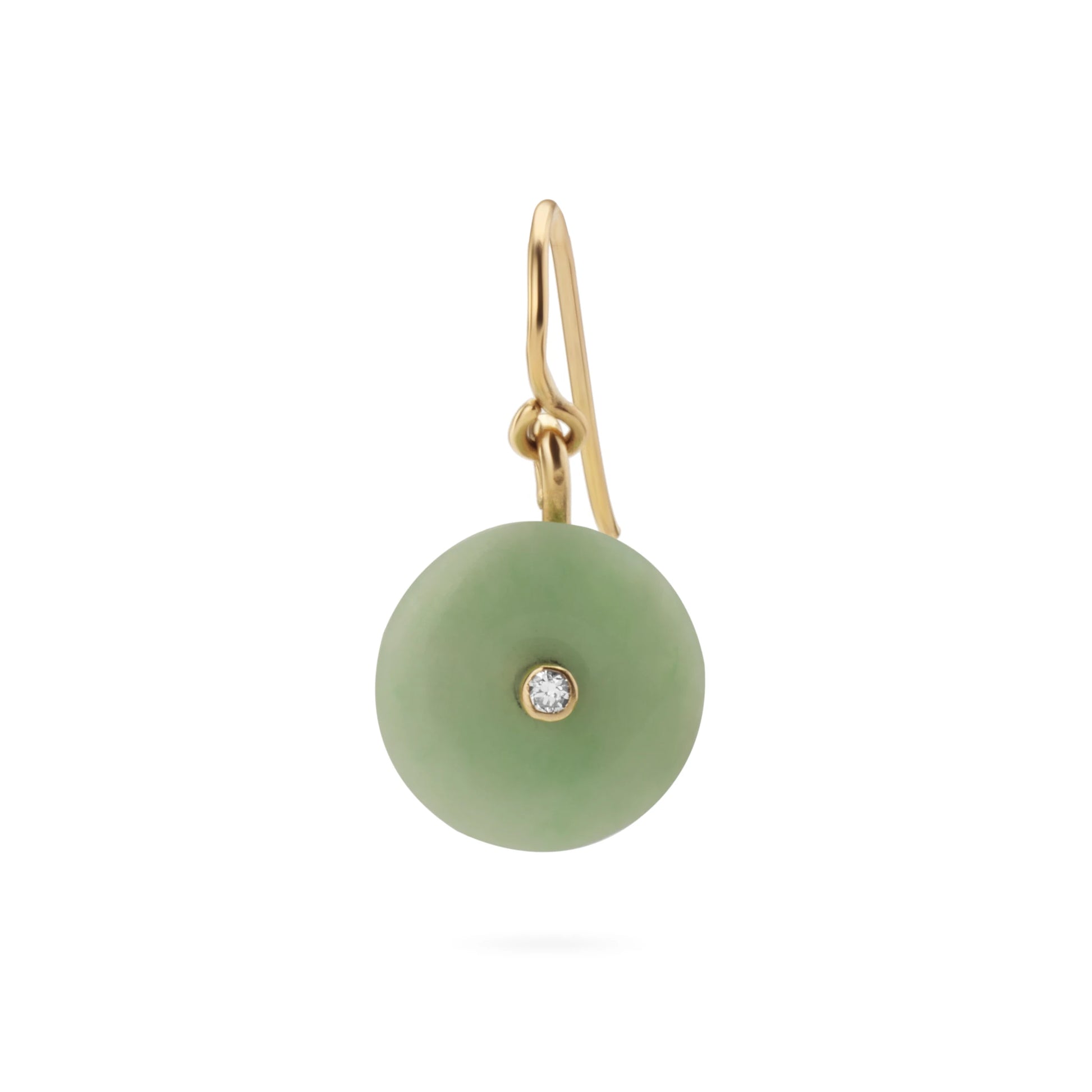 The Jade & Diamond Earring in 9kt gold is a one of a kind design which features a reclaimed jade gemstone and lab grown diamond. Perfect for layering with other earrings in a second piercing, the Jade & Diamond Earring is sold as a single earring.