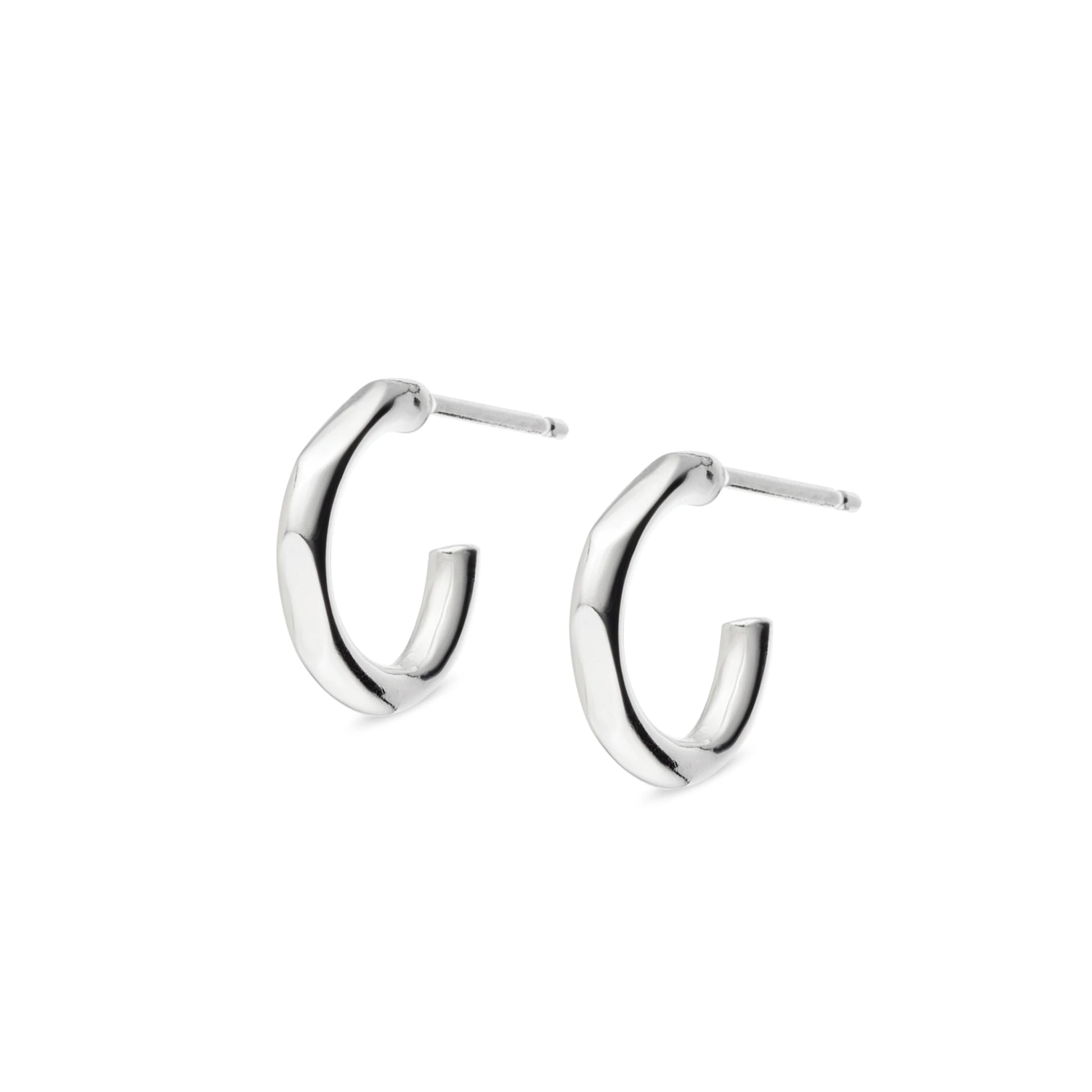 These small everyday hoop earrings have been carved with a faceted design to provide subtle detail, allowing the earrings to be worn alone or paired with other pieces.