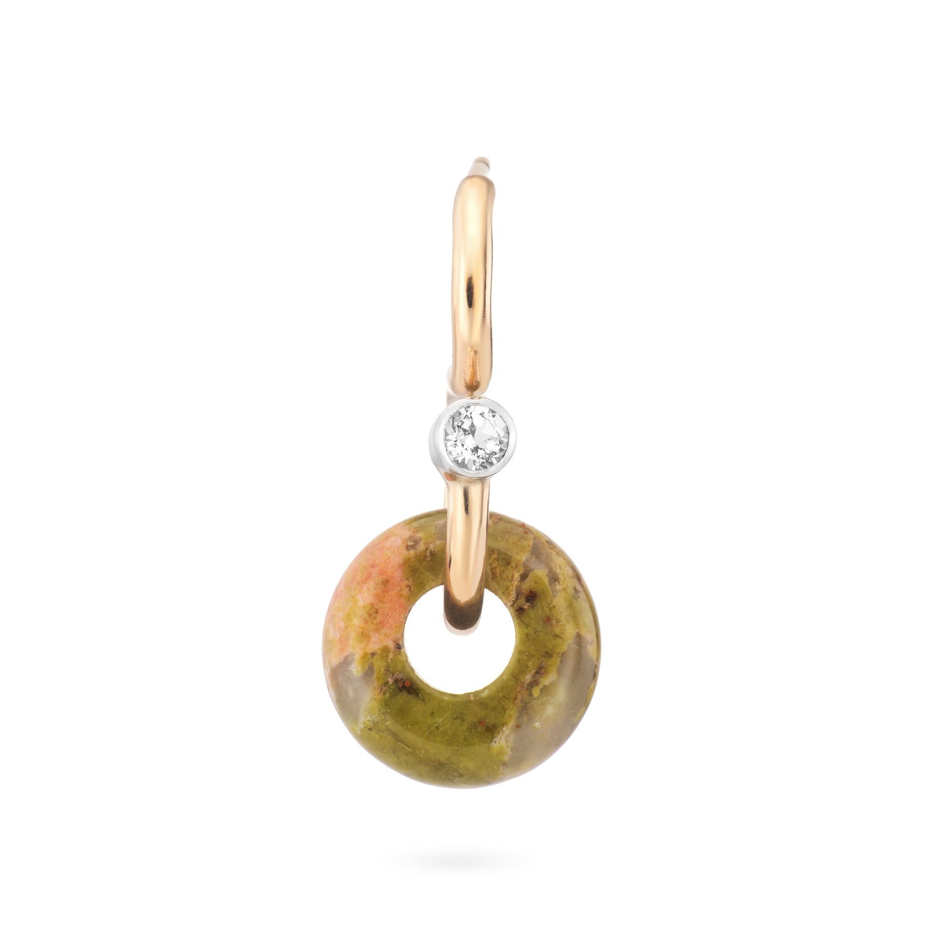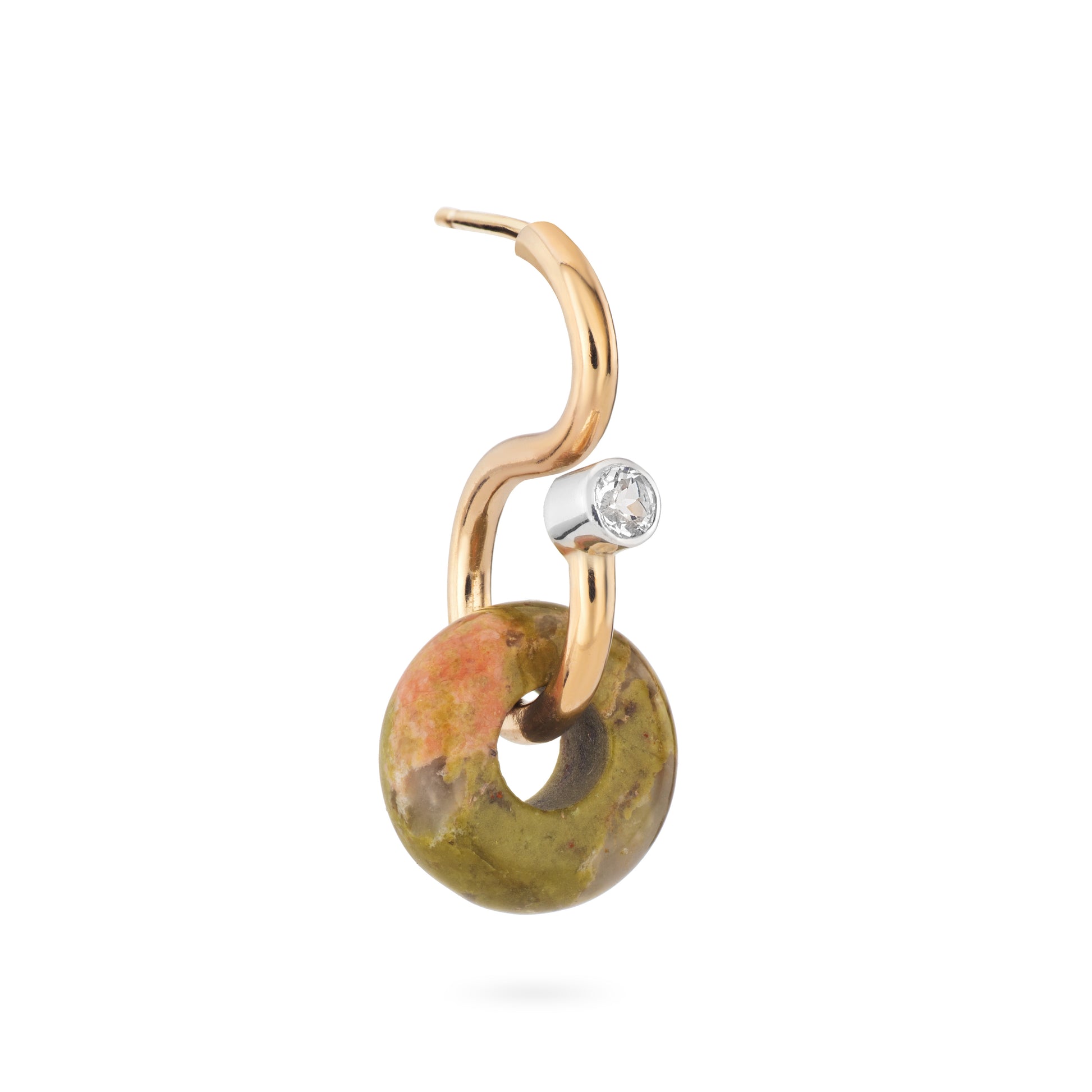 • Composition: recycled 9kt yellow gold, recycled 9kt white gold, 10mm X 4.5mm unakite rondelle bead and a 2.5mm round white topaz faceted gemstone