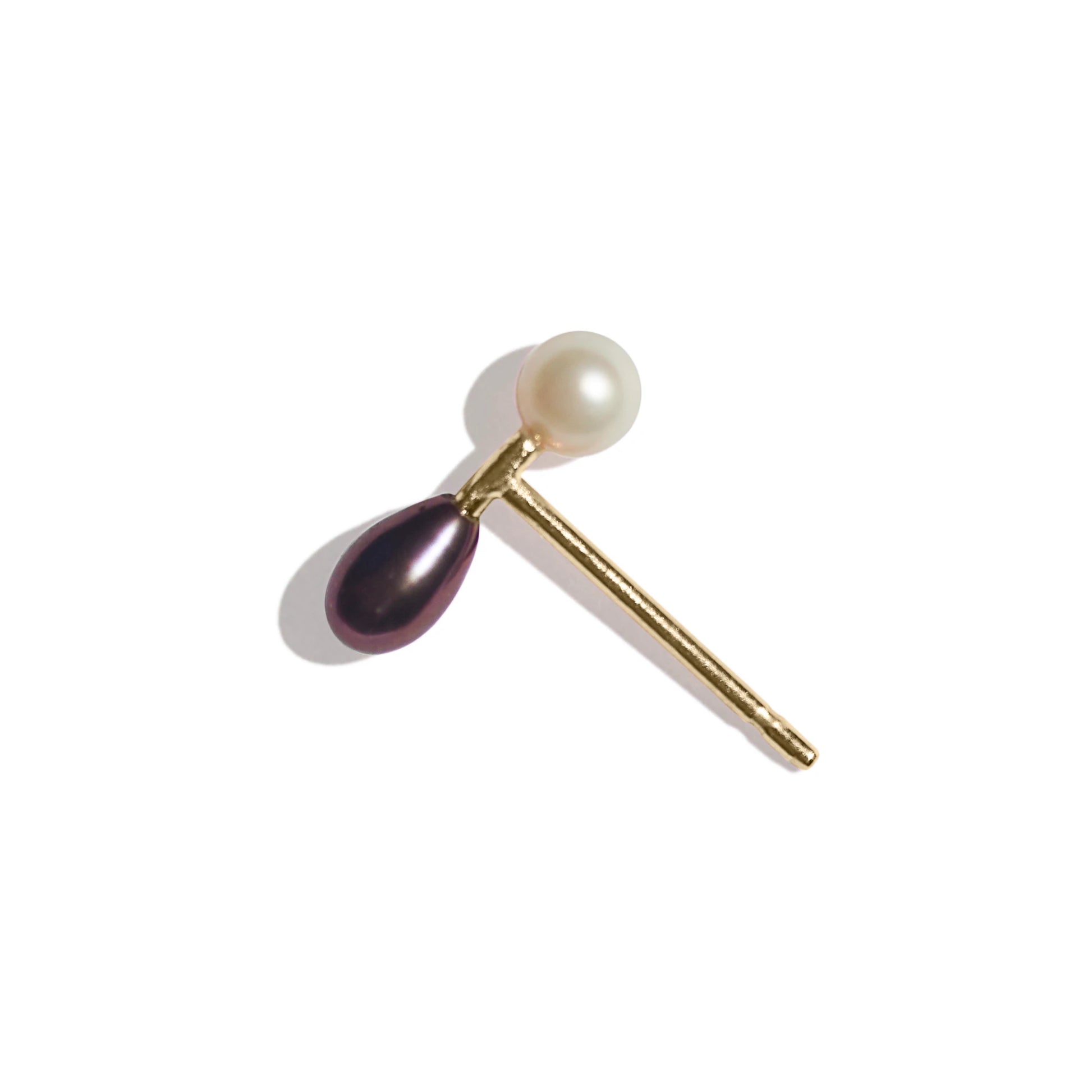 This barbell earring features a dreamy freshwater cultured pearl and a midnight peacock dyed cultured pearl connected by a recycled 9kt gold bar. Sold as a single stud so you can mix and match with other barbell studs for a playful look.