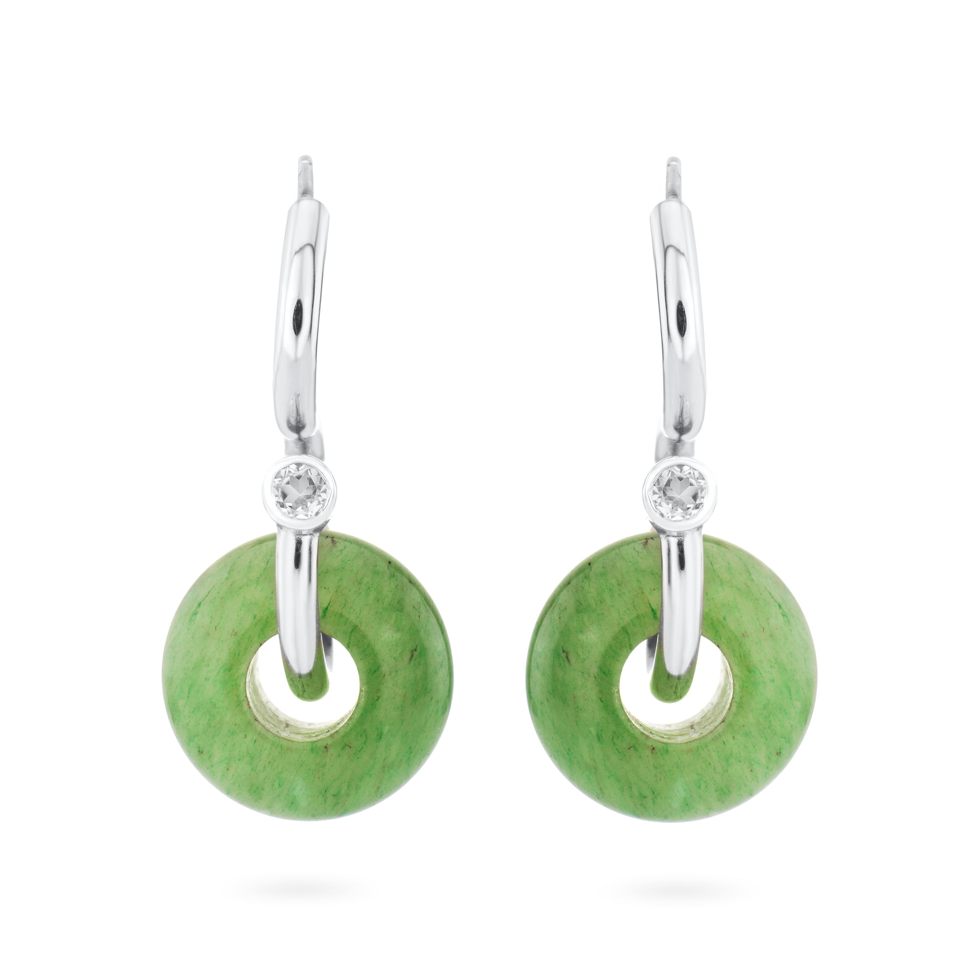 - Ornate Signature Poise Aventurine Earrings made from sterling silver, featuring an aventurine rondelle bead and white topaz faceted gemstone