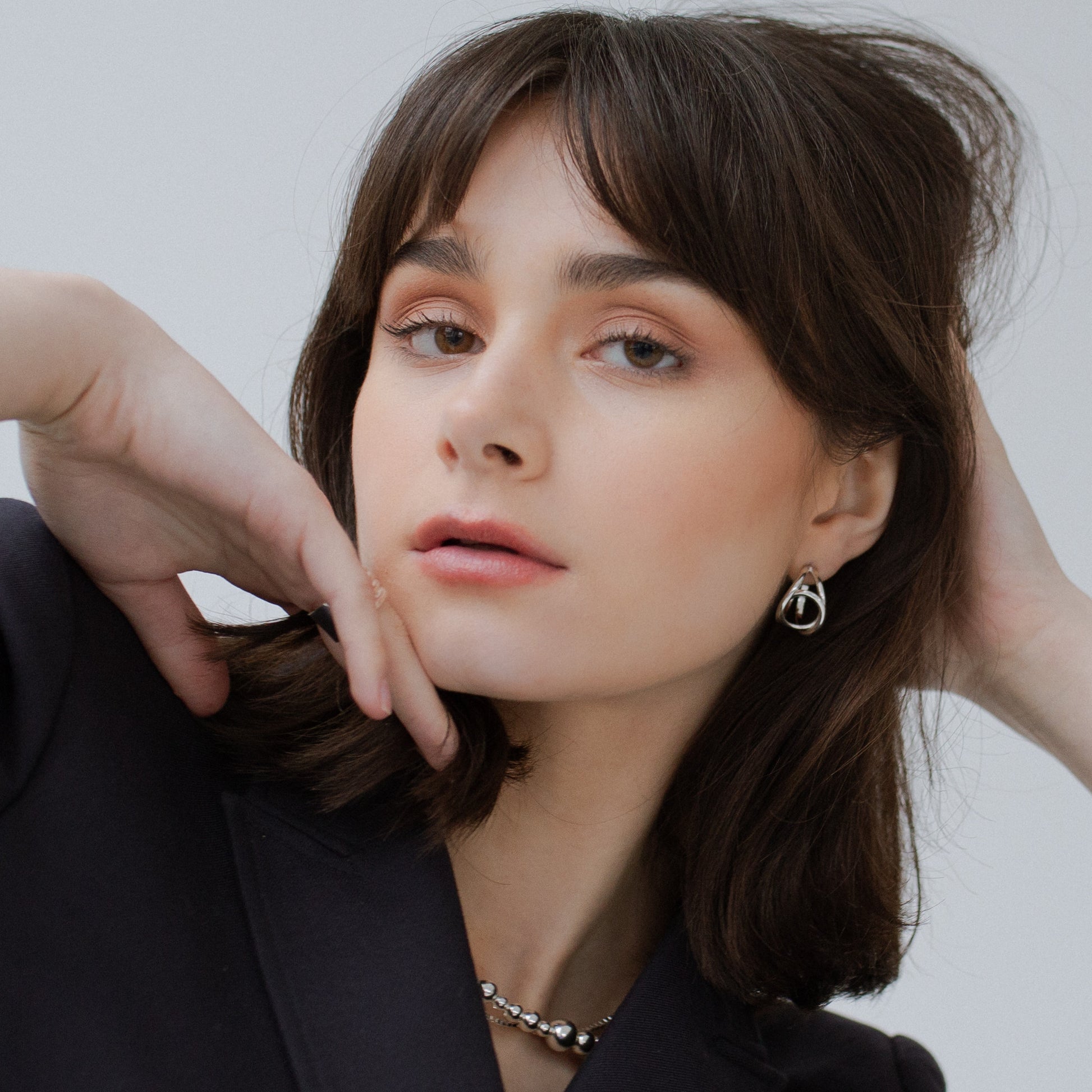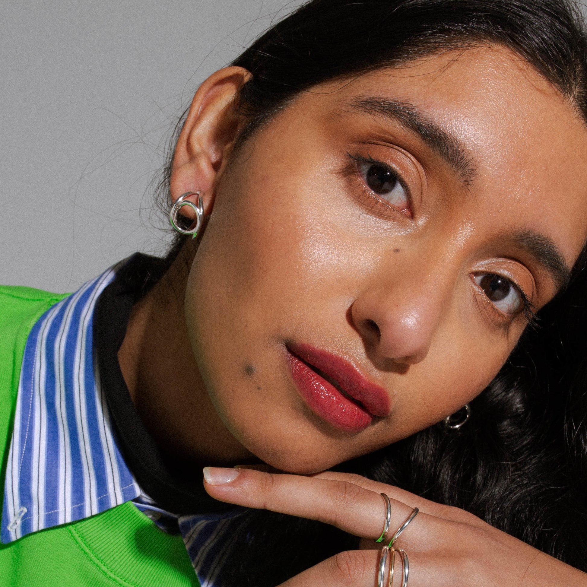 Pair with the Sphere Collar, a modern silver statement piece, as worn by Molly to create a modern look.